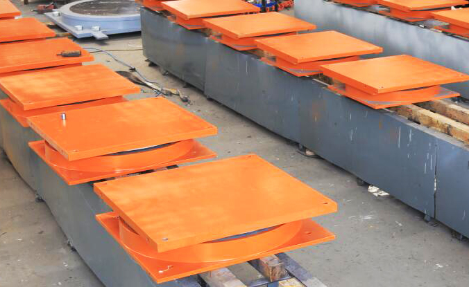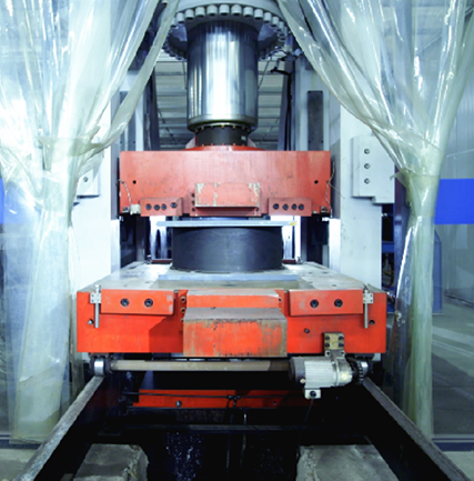 目前擁有6000噸平板硫化機, 能加工直徑2500mm的隔震支座; 以及3600噸平板硫化機, 能加工直徑2000mm的隔震支座。且采用先進的導熱油及電加熱溫控系統(tǒng),精度更高,使產(chǎn)品使用壽命提升10年以上。