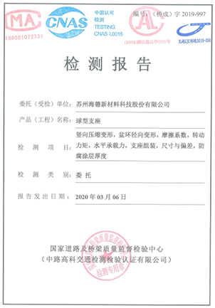 與國內(nèi)外多家權威機構合作, 對產(chǎn)品進行第三方檢測。例如同濟大學、東南大學、華中科技大學、廣州大學、交通部公路工程檢測中心、交通部交通工程檢測中心、石油和化學工業(yè)橡塑與化學品質(zhì)量監(jiān)督檢驗中心(北京)、鐵道部產(chǎn)品質(zhì)量監(jiān)督檢驗中心、國家道路及橋梁質(zhì)量監(jiān)督檢驗中心、北京中交工程技術有限公司、SGS、DNV GL......