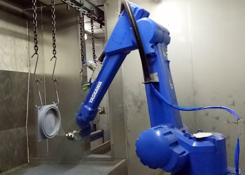 機器人無氣噴涂6軸關節(jié), 可做復雜的軌跡運動涂膜均勻, 提高噴涂質(zhì)量效率高, 防爆性好, 大大降低勞動成本,減少勞動風險; 往復機靜電噴涂提高涂層的光潔度、附著力,節(jié)省大量漆料。邊、 角地方涂膜包裹性更好。